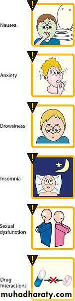These drugs are as effective as the TCAs, but do not cause hypotension, sedation or anticholinergic effects. Moreover, overdose does not cause cardiotoxicity.
