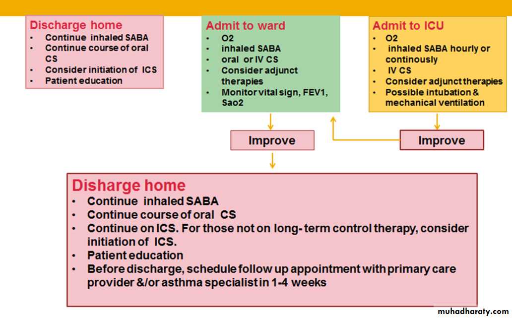 Include administration of an inhaled β-agonist up to every 3-4 hr .3-7 day course of an oral corticosteroid.