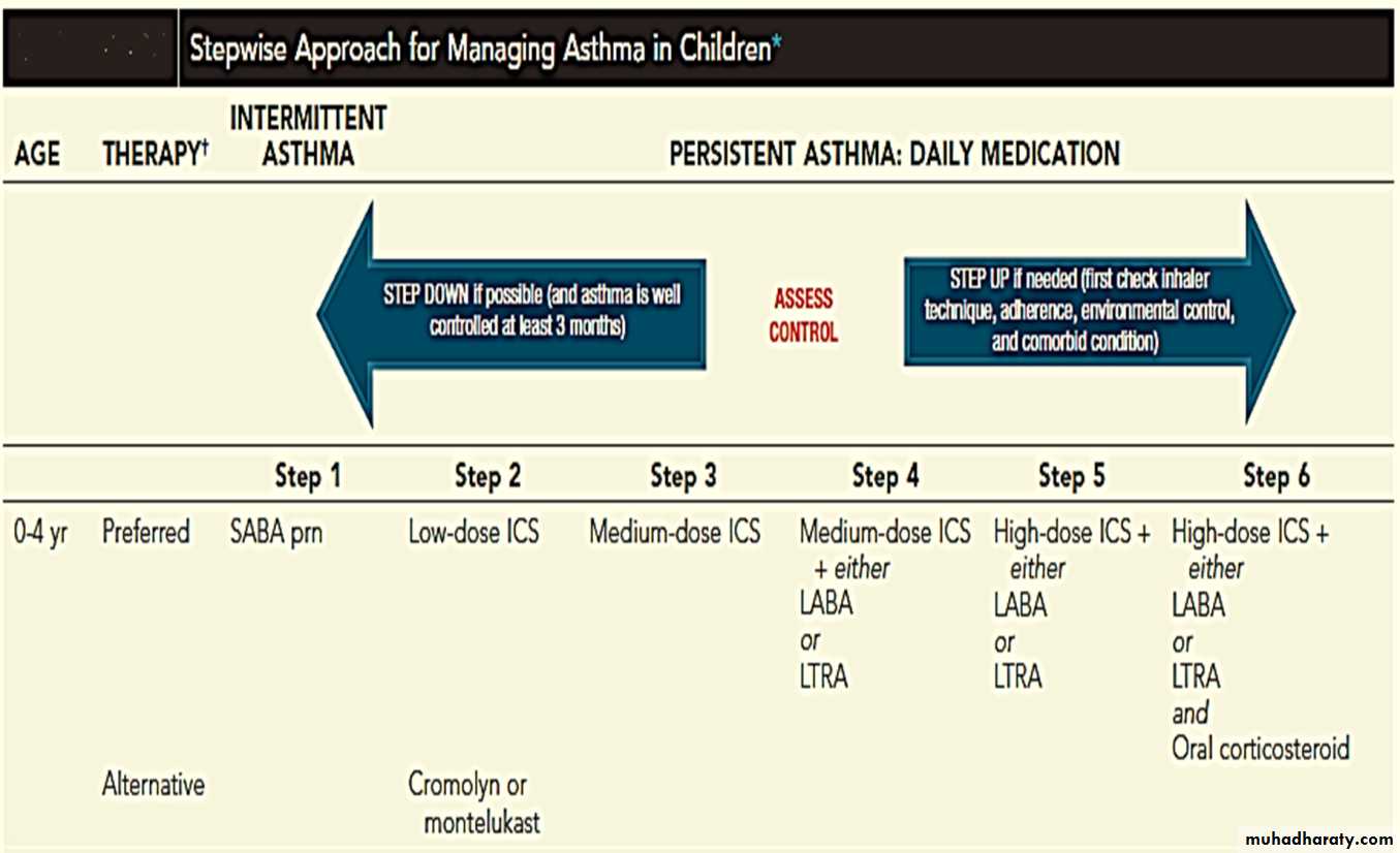 Medication type, amount, and scheduling are determined by the level of asthma severity or asthma control.