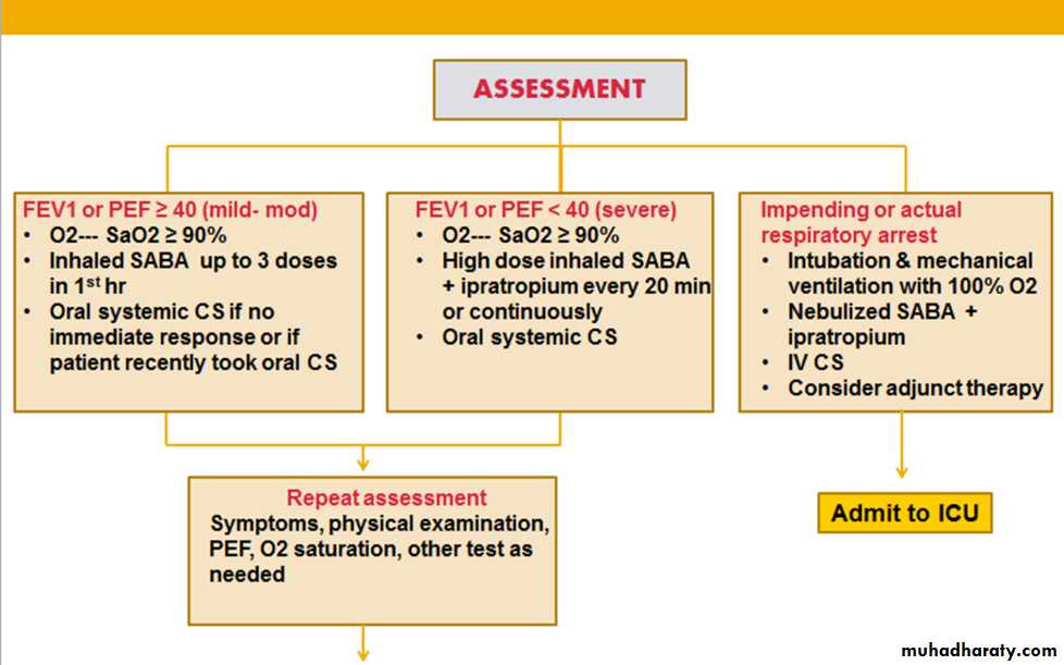 Assessment and monitoring:Assessing asthma severity as intermittent & persistent (mild, moderate, severe)