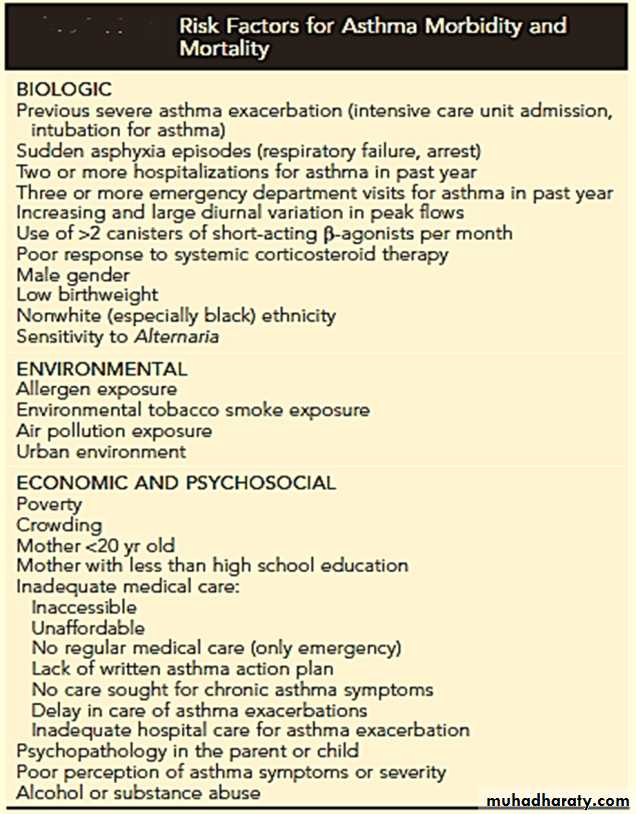 Early childhood risk factors for persistent asthma have been identified and have been described as:Major: (parent asthma, eczema, inhalant allergen sensitization) and