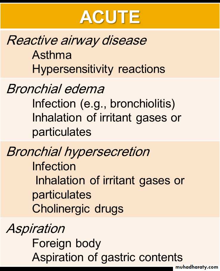 Lower air way disease often result in air way obstruction. Obstruction below the thoracic inlet manifist mainly as wheezing.