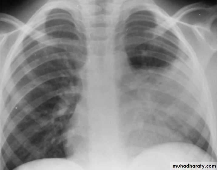 CXR: segmental lung atelectasis. Perihilar infiltrates are common and are similar to what is seen in viral pneumonia.
