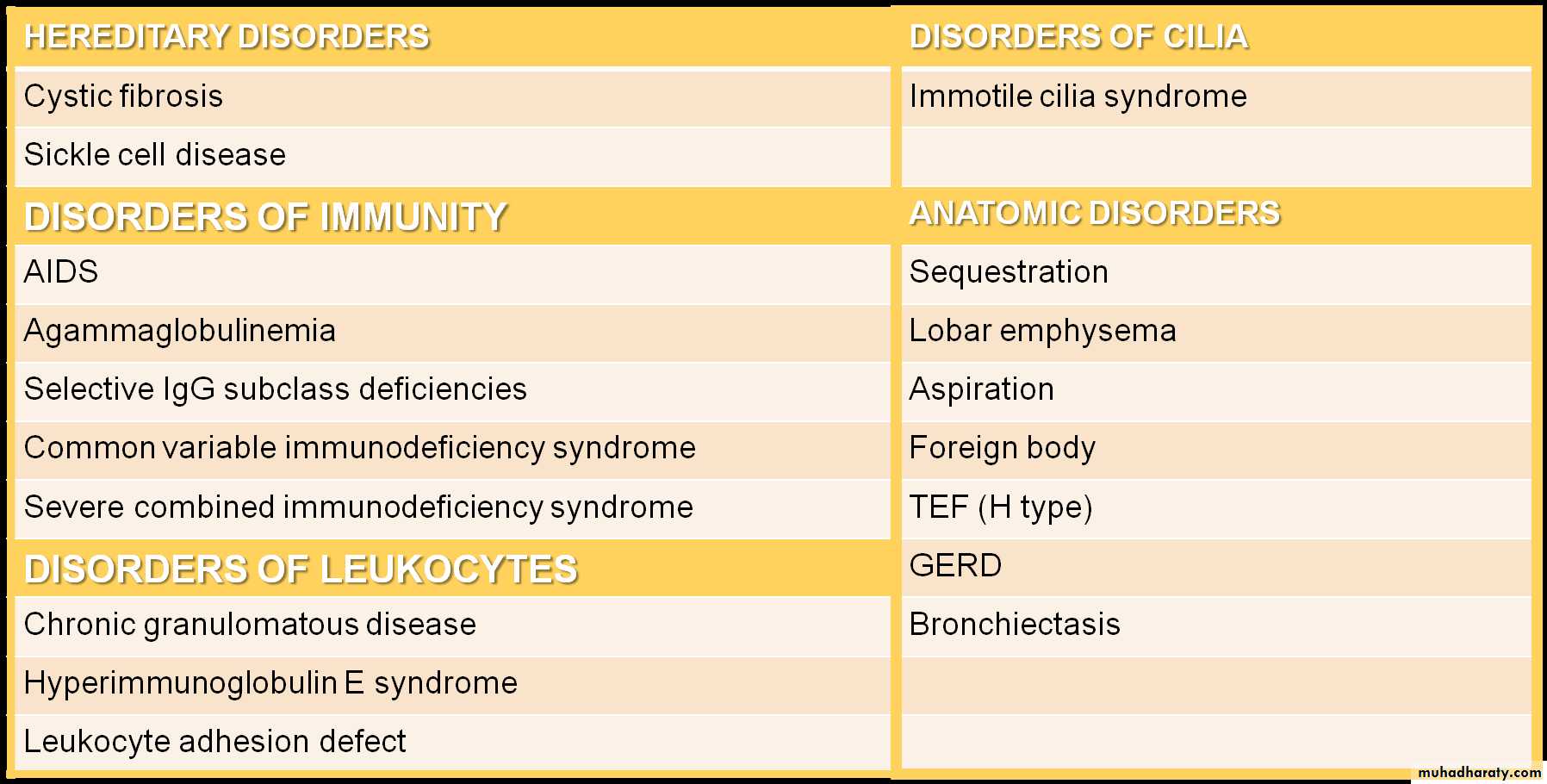 In a few children, pneumonia may persist longer than 1 month or may be recurrent. In such cases, the possibility of underlying disease must be investigated further, such as: