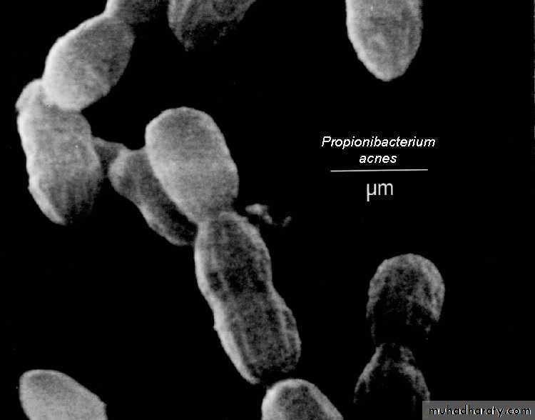 This micro-environment allows the proliferation of bacterium, which is part of the normal flora of follicles. This gram-positive rod has low virulence but is capable of metabolising triglycerides and releasing free fatty acids. This metabolism, as well as its ability to activate complement, produces pro-inflammatory mediators, including neutrophil chemo-attractants.