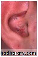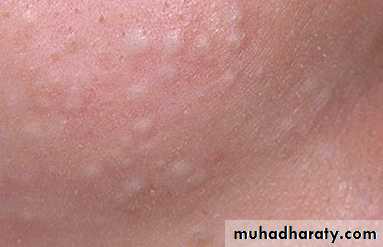 Pustules (pimples) - inflamed pus filled lesions that are red at the base.