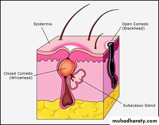 The initial step in the development of acne is the formation of the microcomedon: Follicular keratinocytes that exhibit increased cohesiveness do not shed normally, leading to retention and accumulation of sebum.Androgens stimulate enlargement of sebaceous glands and increased sebum production, and the abnormal keratinaceo-us material and sebum collect in the microcomedon.