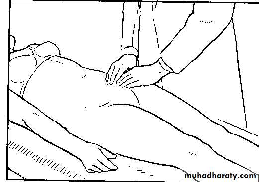 lumbar spine first becomes palpable deep in the iliac fossa. Such an