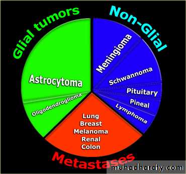 These are the most common primary tumors they arise form the glial cells which are part of the supportive tissue of the brain