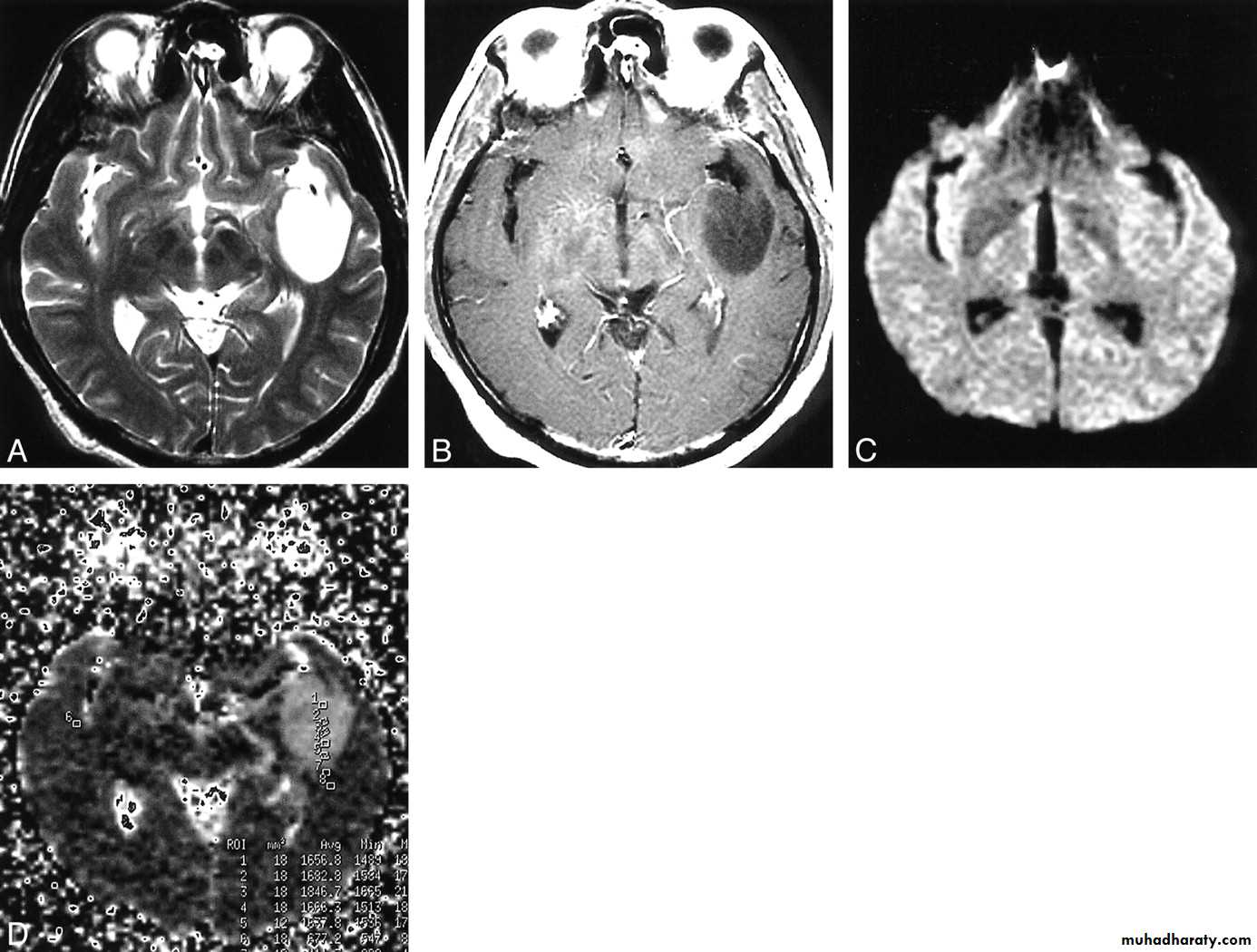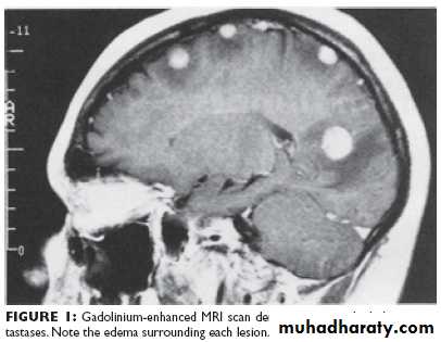 Secondary tumors:These are the most common brain tumors; the primary tumor is mostly in the breast or in the lung. It is usually multiple lesions in the brain, CTscan will show multiple lesions surrounded by oedema. Once diagnosed the Rx is usually radiotherapy or cytotoxic dugs.