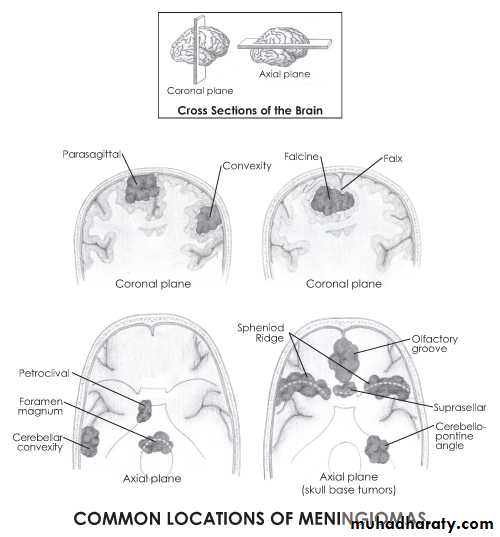 - Arise from the arachnoidal cells, mainly arachnoidal villi, more along the venous sinuses.