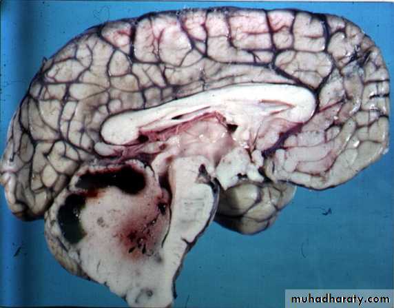 The most malignant brain tumor, rapidly growing , red in color, highly vascular mainly affecting the cerebrum , some pathologists classify it as astrocytoma grade IV.Medulloblastoma:
