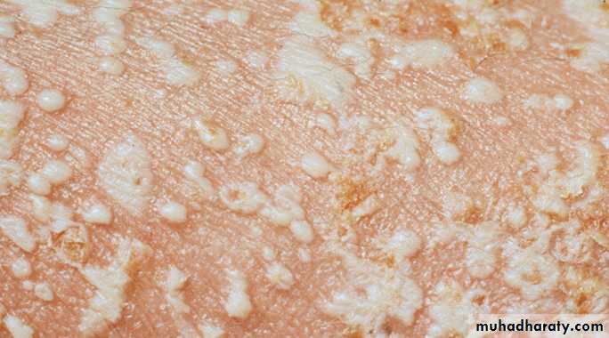 • Generalize erythematous skin studed with sterile pustules some of the pustules coalase together to form pus lakes.