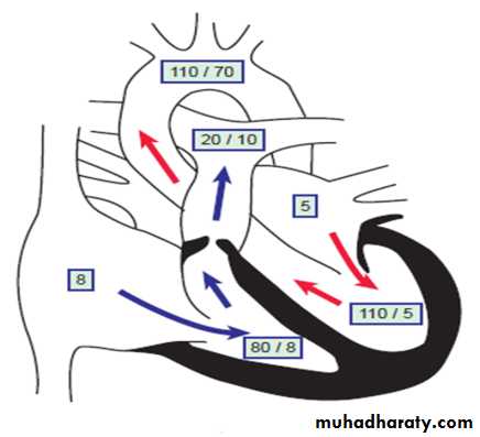 In this situation, the femoral pulses are palpable, and differential blood pressures may not be helpful in making the diagnosis. The ductal right to- left shunting is manifested as differential cyanosis, with the upper extremities being pink and the lower extremities blue. Such infants may have severe pulmonary hypertension and high pulmonary vascular resistance. Signs of heart failure are prominent.