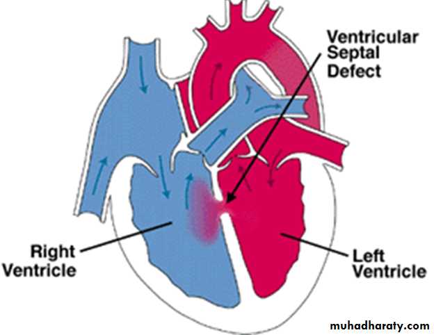 Small VSDs: are often asymptomatic and the cardiac lesion is usually found during routine physical examination. Characteristically, a loud, harsh, or blowing holosystolic murmur is present and heard best over the lower left sternal border, and it is frequently accompanied by a thrill.