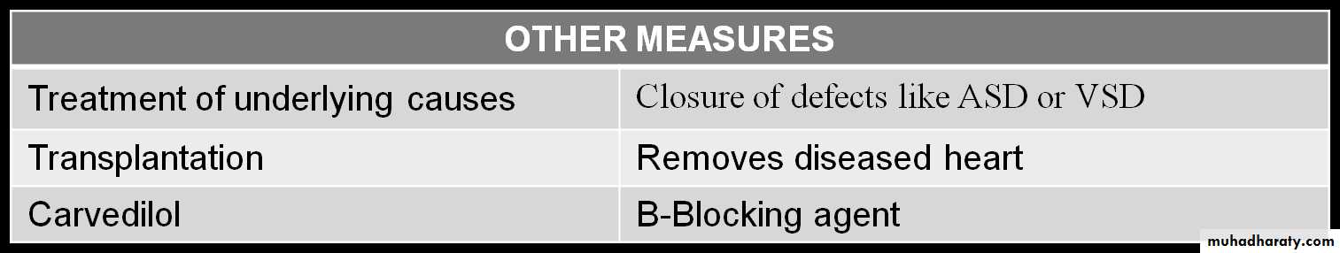 Decongestive therapy for HF: diuretics, ACEI, digitalis are used. β-Adrenergic blockade with carvedilol or metoprolol is often used in patients with CHF.
