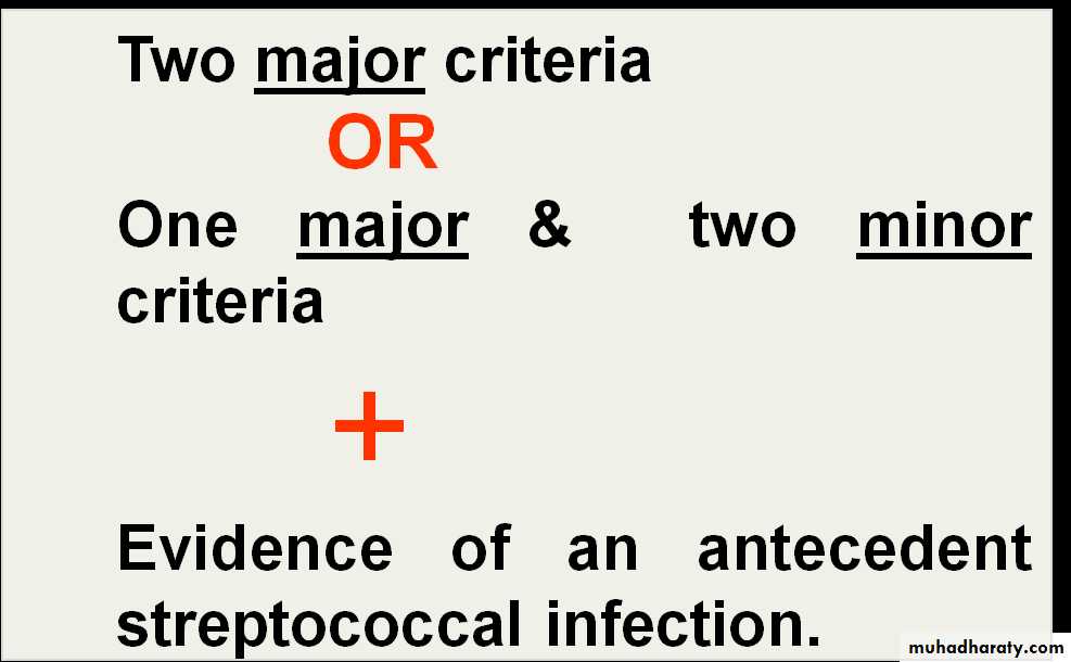 Elevated antistreptolysin O or other antistreptococcal antibodies, it is the most reliable laboratory evidence of prior infection.