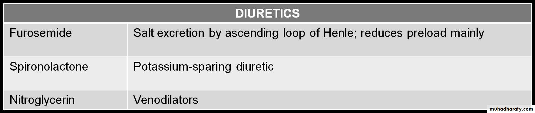 Diuretics: Reducing preload as frusemide