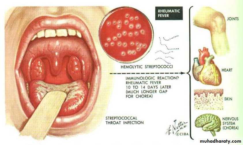 The infection often precedes the presentation of rheumatic fever by 2 to 6 weeks.