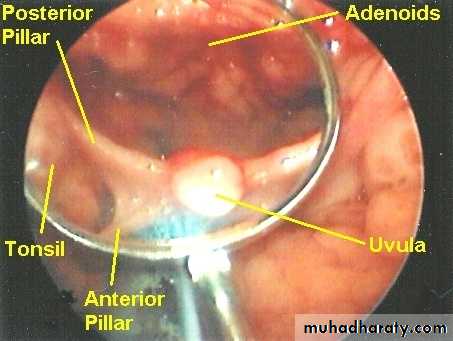 The adenoids lie between the roof and posterior wall of the nasopharynx. Adenoids are present at birth, hypertrophy occurs in earlier years of childhood, maximum bulk is obtained at 6 years and atrophy at puberty.