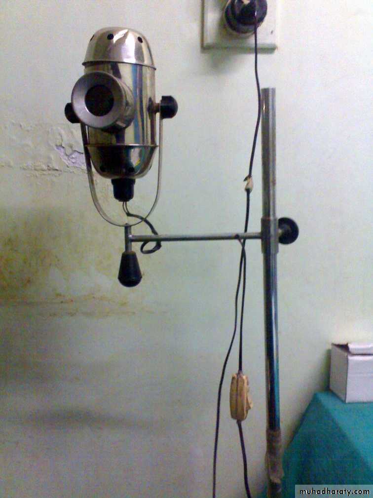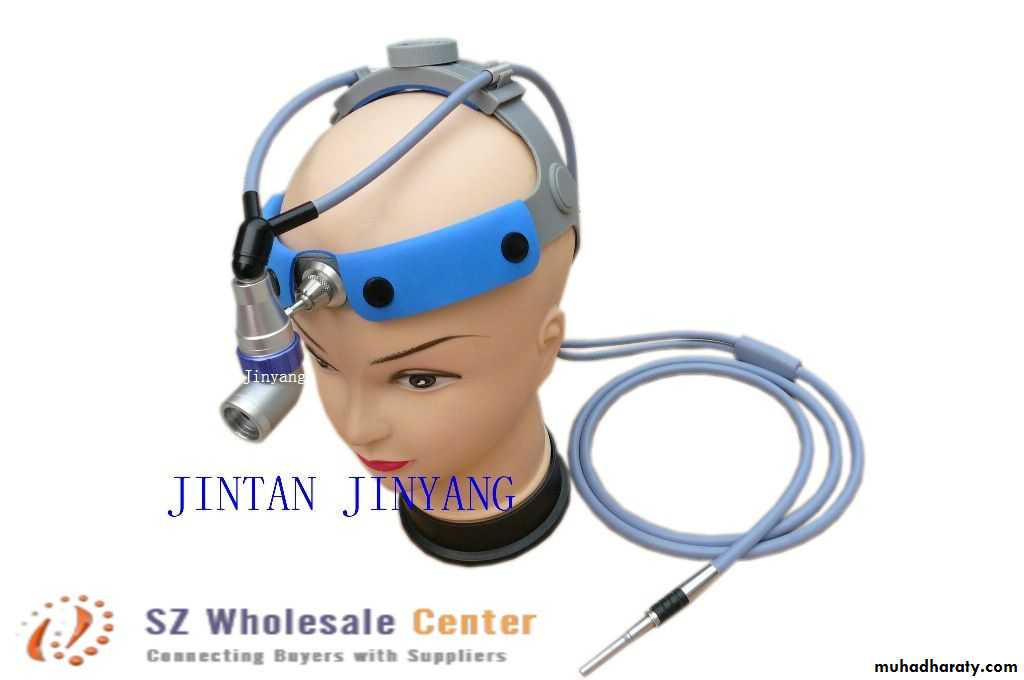 This lamp focus the light toward the head mirror. Its position must be above the left shoulder of the patient.Head Light