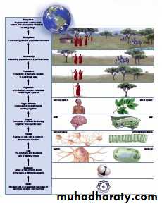 Fig1.2 Biological organization levels, organisms are organized. smallest unit of living organisms is the cell; the sum of living things & locations they inhabit is biosphere\