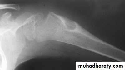 Lesions occur in metaphysis&diaphysis, proximal femur is a common site it gives characteristic deformity called (shepherd’s-crock deformity(عصا الراعي.