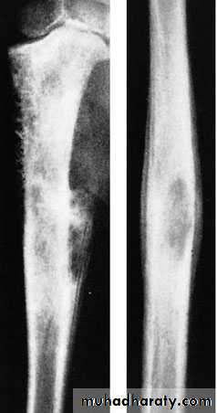 Malignant tumor of vascular endothelium of bone marrow.Occur at the diaphysis of long bones commonly tibia, fibula and clavicle.