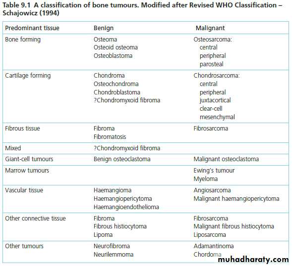 The primary bone tumors are those arising from bony tissues itself and can be classified according to the cell of origin as below: