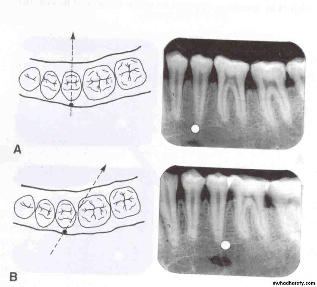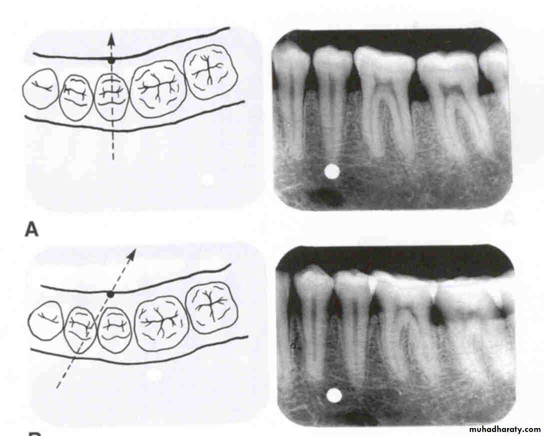The image of Tooth that is farther away from X-ray tube(lingual) moves in same direction as tube and Image of Tooth closer to X-ray tube (Buccal) moves in opposite direction.