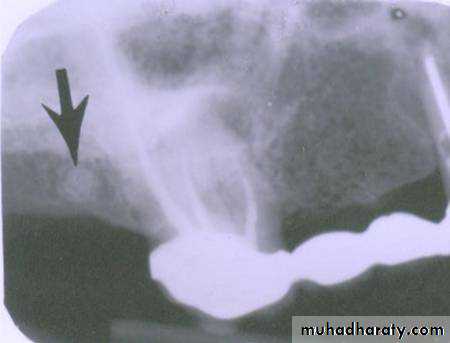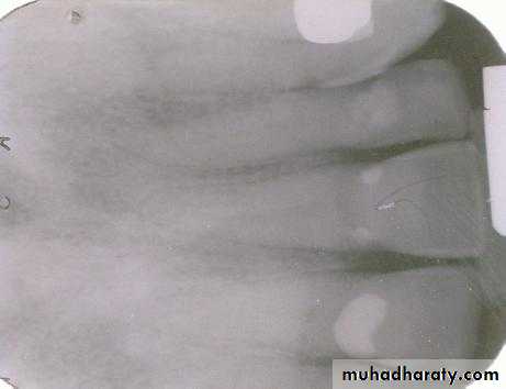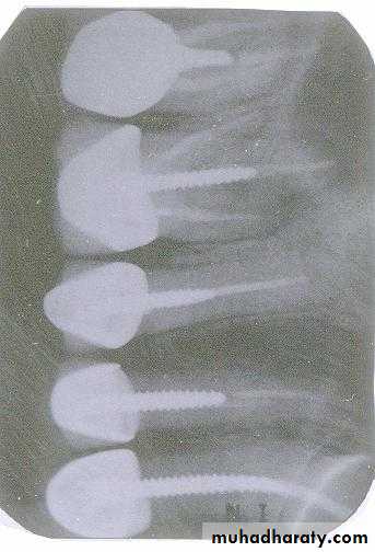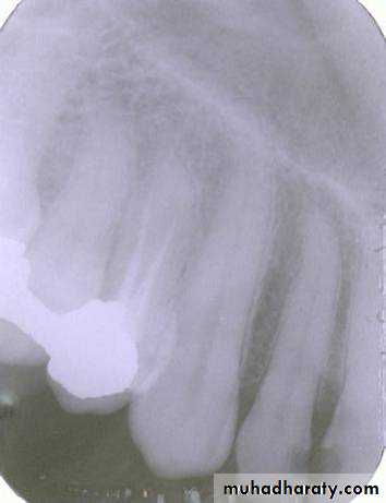 This is the buccal canal. The tubehead goes distally from the canine film to the premolar film and the gutta percha moves mesially to be positioned over the lingual canal which has the threaded post.