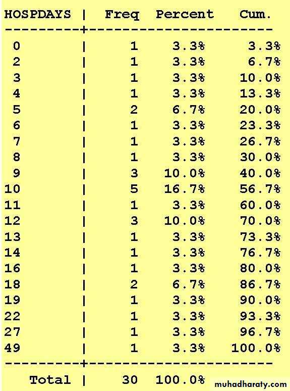 • So the median is the 8th value in the ordered array =11 mile