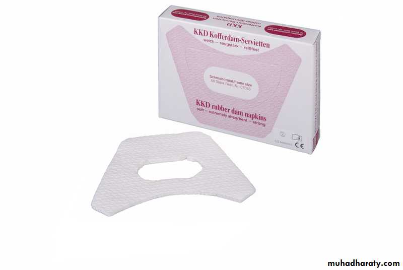 Dental Floss: It is used as flossing agent for rubber dam in tight contact areas.Rubber Dam napkin: This is a sheet of absorbent material placed between the rubber dam and skin.
