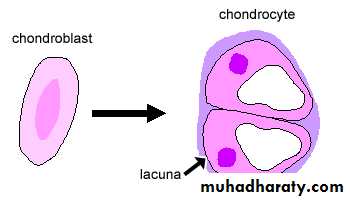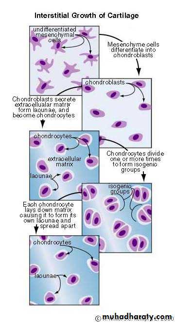 mesenchyme cell differentiate into chondroblast , then chondroblast secreat ECM to form lacunae, and become chondrocytes