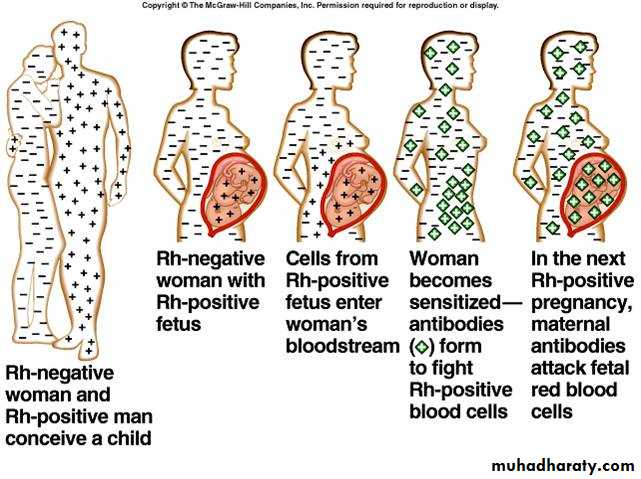• Resulted from D negative female and D positive male producing and offspring.