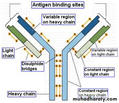 ANTIBODY - is a glycoprotein molecule made by Blymphocytes, present in serum and other body fluids which mediates humoral immunity. Antibodies are shaped like a "Y" with the two "arms" of the Y being the regions that bind antigens and the "tail" of the Y being a constant region that is recognized by Fc receptors