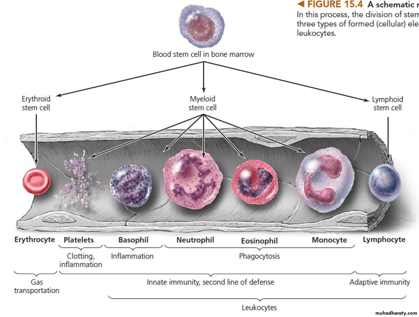 • Several different and diverse types of leukocytes exist, but they are all produced and derived from a multipotent cell in the bone marrow known as a hematopoietic stem cell.