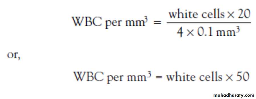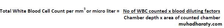 White blood cell count (WBC) is the total number of leukocytes in a volume of blood, expressed as thousands/µl.Total WBC count can be done by manual methods or by automated cell counters.