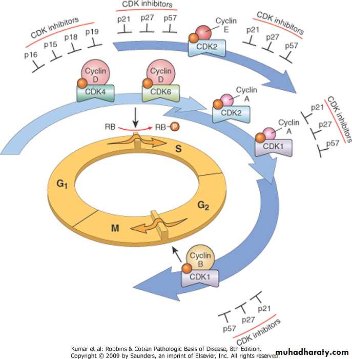 .after fixed number of divisions, normal cells become arrested in non-dividing state achieved by progressive shortening of telomeres at the ends of chromosomes, recognized by DNA repair machinery, & this leads to cell cycle arrest mediated by p53 & RB.in cancers, telomere maintenance results from up-regulation of enzyme telomerase