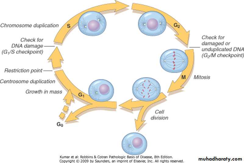 -when cells sense DNA damage, checkpoint activation delays cell cycle & triggers DNA repair -if DNA damage is too severe to be repaired, tumor suppressor genes products (RB, p53, APC) lead to .temporary cell cycle arrest (quiescence) .permanent cell cycle arrest (senescence)>apoptosis through growth-inhibitory pathways .cell differentiation