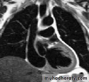 Magnetic resonance imaging (MRI) requires no ionising radiation and can be used to generate cross-sectional images of the heart, lungs and mediastinal structuresCardiac catheterization