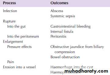 Treatment of local complication, a Pseudocyst, or abscess.