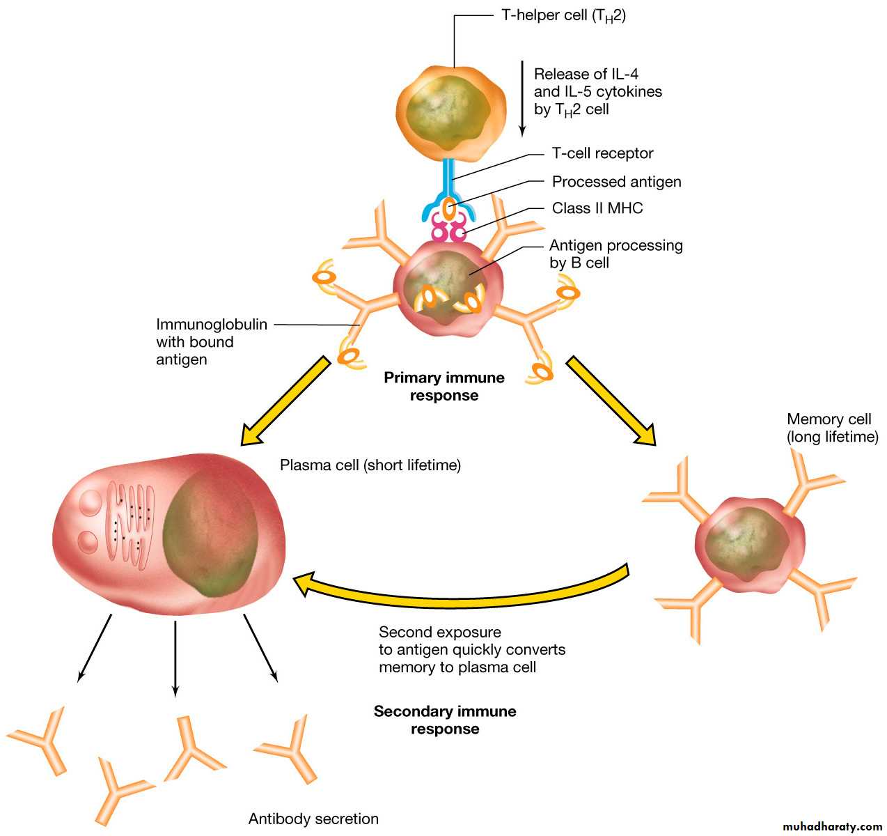 • . Some differentiated into plasma cells which secrete antibodies, die within 1- 2 weeks.