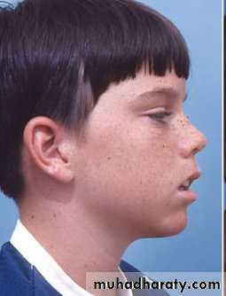 Extraoral featuresLong face due to increased lower anterior facial height