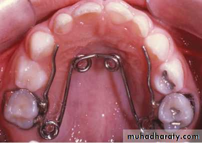 • Appliance therapy: fixed appliance is indicated due to lack of patient compliance. The appliance acts as a reminder and provides mechanical obstruction for sucking.The preferred type is maxillary lingual arch with an anterior crib device.
