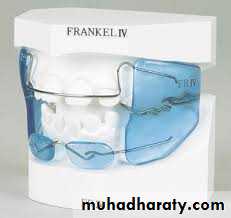 • Functional appliance with bite blocks like Franckle VI and bionator.The bite blocks inhibit eruption of posterior teeth and vertical descent of maxilla and this is achieved by fabricating the appliance with the bite opened past the normal resting vertical dimension.