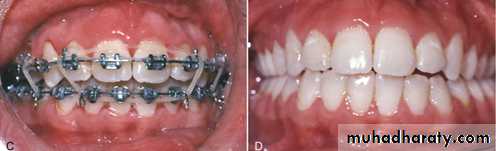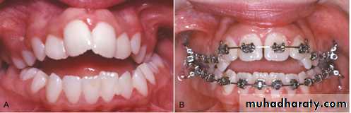 Flared and spaced incisors may need retraction using removable Hawley appliance.