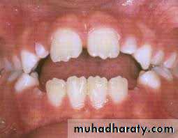 Children who produce 6 h or more of pressure, can cause significant malocclusions.characterized by flared and spaced maxillary incisors, lingually positioned lower incisors, anterior open bite and a narrow upper arch.