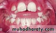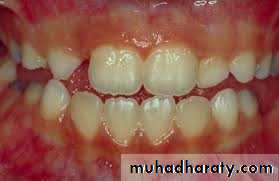 This malocclusion arise from a combination of direct pressure on the teeth and an alteration in the pattern of resting cheek and lip pressures.