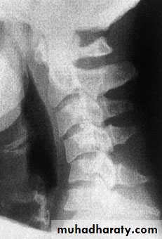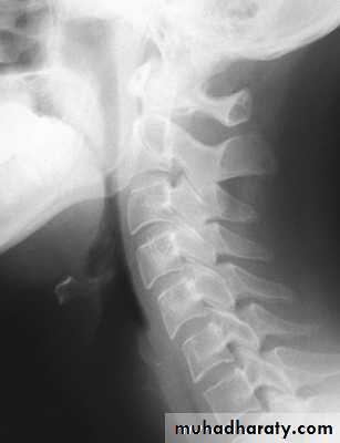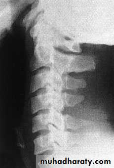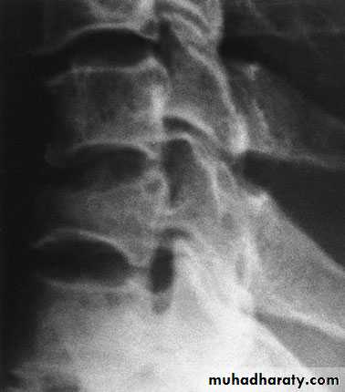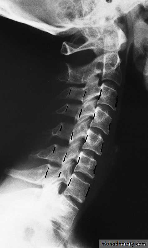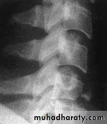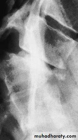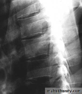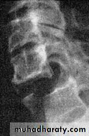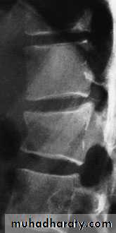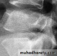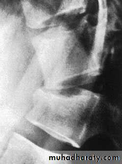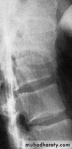 in the anteroposterior view the apparent height of the vertebral body may be increased. In the lateral view there may be opening up.